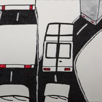 Auto’s zijn een favoriet onderwerp. Opvallend is de detaillering van de auto’s. Deze worden vaak vanaf de zijkant of juist frontaal afgebeeld.